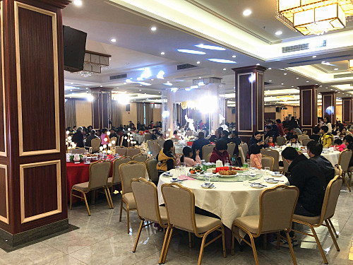 2021年1月18日农历腊月初六,宏元海鲜城承接了60多桌的联姻婚宴,席设二楼黄金阁大厅和国宴厅进行。现在,人们生活水平提高,交通方便,工作繁忙,为了节省时间,也为了增加婚庆的喜庆隆重旺财之气,新时代新方式,将原来传统的结婚喜酒先女方后男方两家就地宴请的方式进行改良,保持传统,创新方式来进行,既节省了各方的时间,也增加了婚宴的喜庆气氛,值得赞赏!为这对新人及其父母点赞!